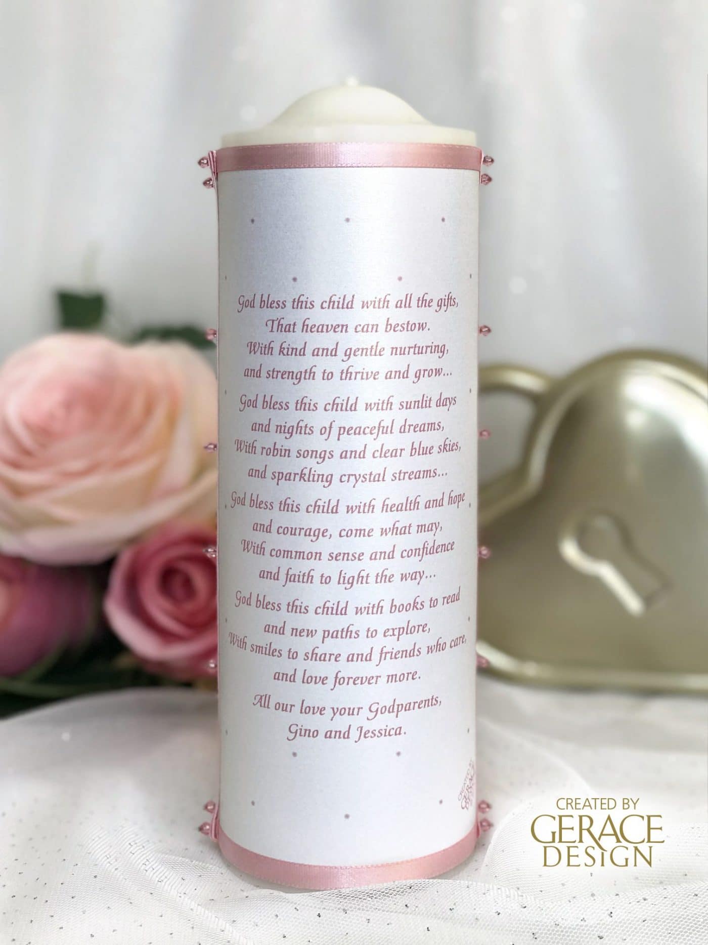 Baby pink satin ribbon and embellished with genuine Swarovski Crystals