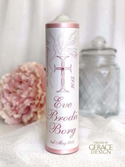 Baby pink satin ribbon and embellished with genuine Swarovski Crystals