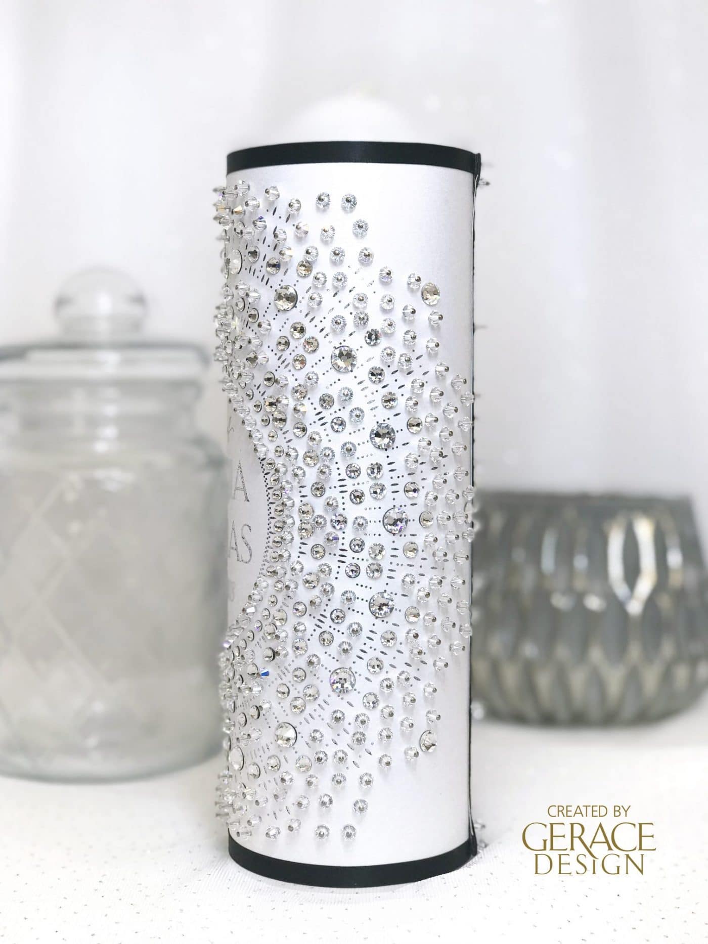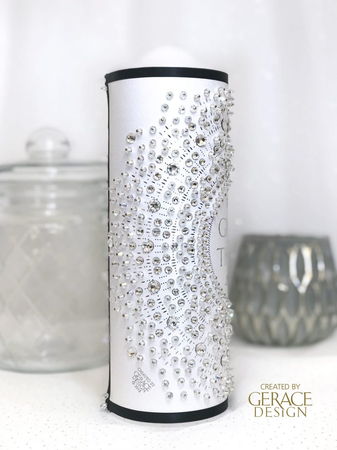 White satin ribbon and embellished with genuine Swarovski Crystals Matching family candles - Unity Set (modified) Small candle size 175mm x 55mm Price $50 each