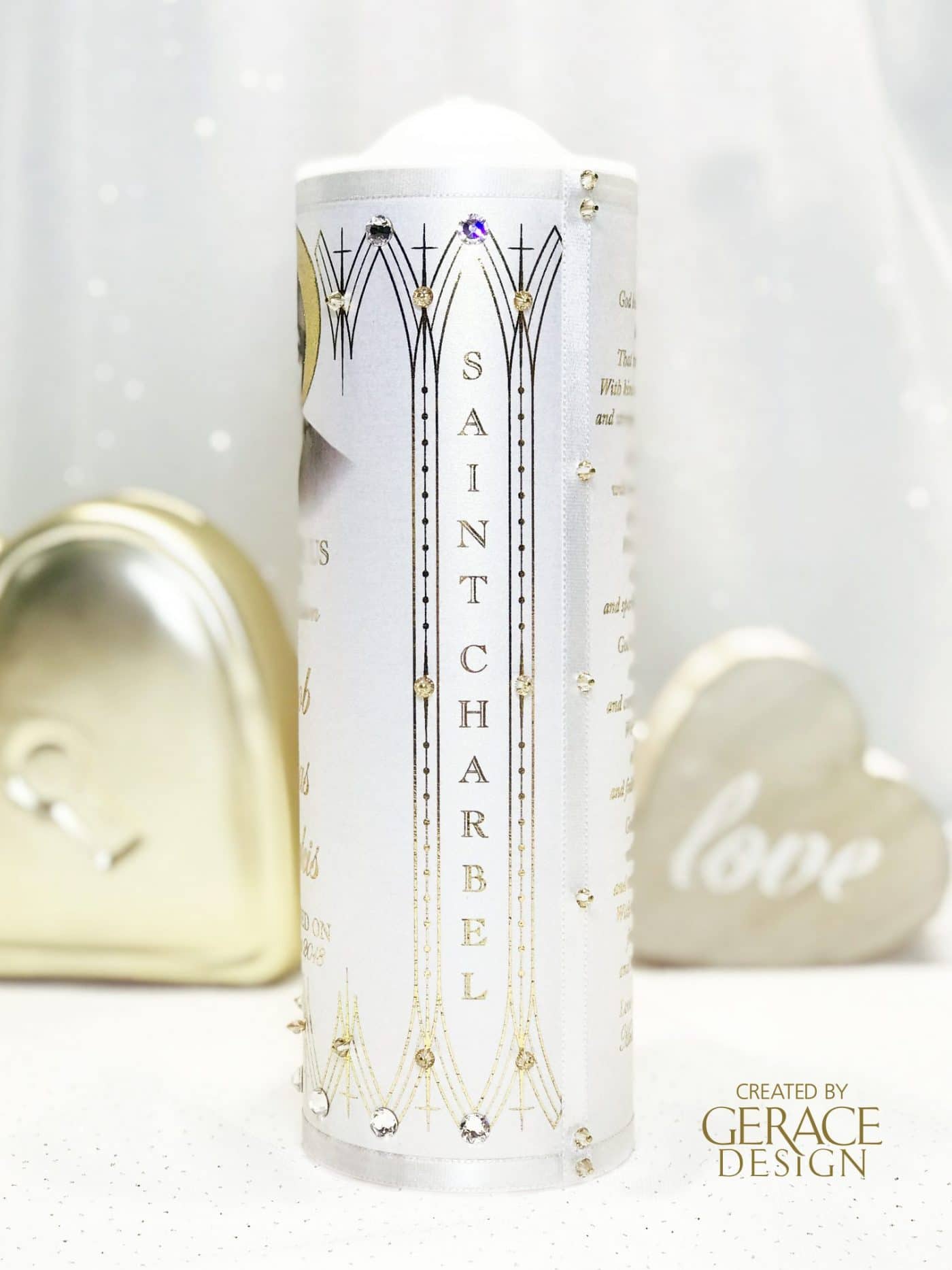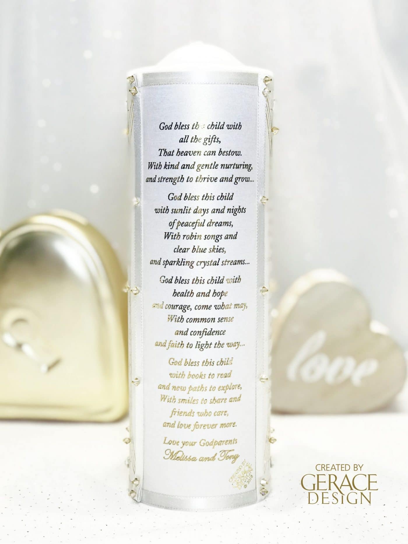 Back of candle has “GOD BLESS THIS CHILD” prayer optional