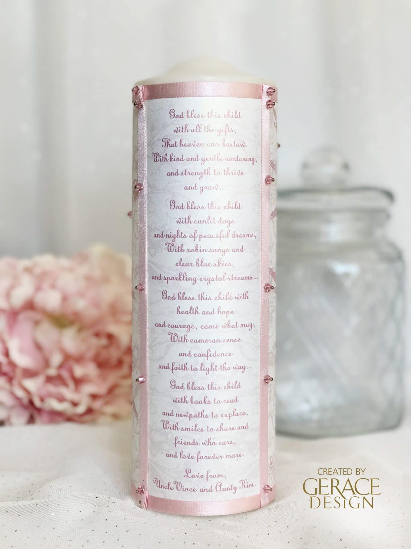 Baby pink satin ribbon and embellished with genuine Swarovski Crystals
