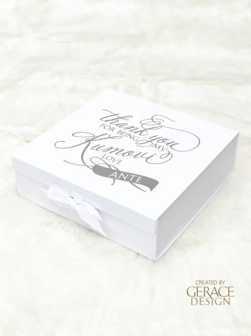 Small hamper box with personalised name in vinyl decal Dimensions 28cm(D) x 28cm(W) x 11.5cm(H) Stock available in our Sydney studio WE RECOMMEND PICK UP WITH ALL OUR BOXES