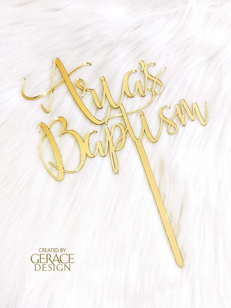 Mirror Gold Acrylic Baptism Cake Topper